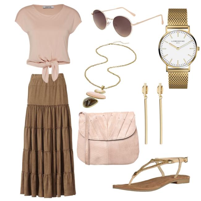 T-Shirt: EDITED THE LABEL | Rock: B.C. BEST CONNECTIONS BY HEINE | Sonnenbrille: VERO MODA | Kette: HEINE |Tasche: PIECES | Uhr: LIEBESKIND BERLIN | Ohrringe: BLOND ACCESSORIES | Schuhe: TAMARIS