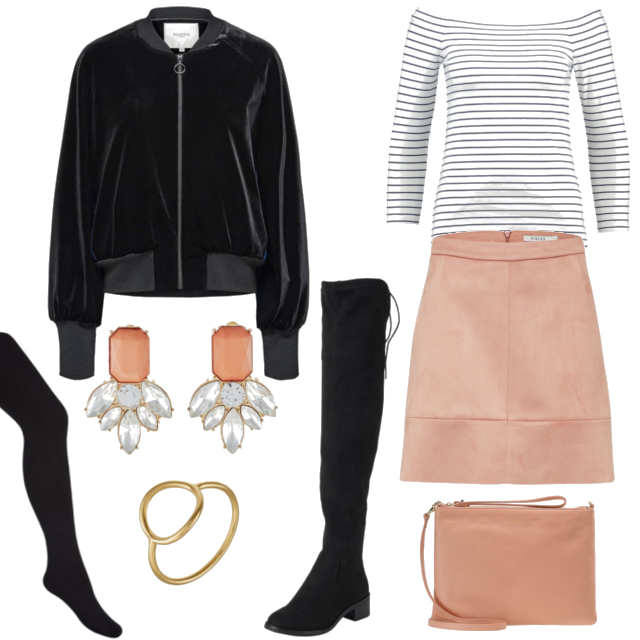 Jacke: SELECTED FEMME | Langarmshirt: ZALANDO | Schuhe: S.OLIVER | Rock: PIECES | Ohrringe: ONLY | Tasche: COCCINELLE | Ring: MARIA BLACK | Strumpfhose: PIECES