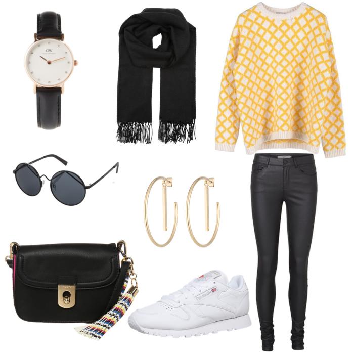 Pullover: STEFANEL | Jeans: VERO MODA | Sneaker: REEBOK | Tasche: ALDO | Schal: PIECES | Sonnenbrille: LE SPECS | Uhr: DANIEL WELLINGTON
